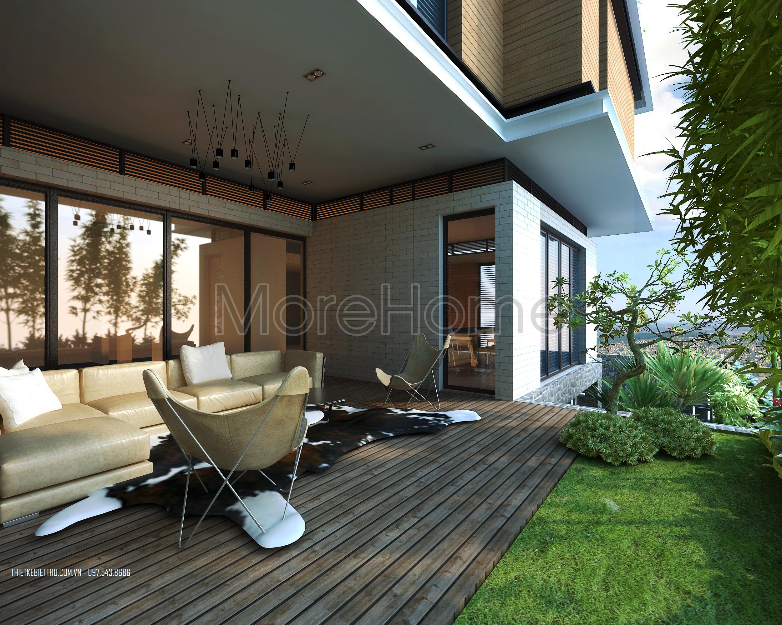 Thiết kế ngoại thất biệt thự cao cấp tại Cao Bằng sử dụng các vật liệu nhẹ như gỗ và kính cường lực trong suốt mang đến cảm giác thanh thoát nhẹ nhàng cho gia chủ, không hề mang lại sự bí bách của các bức tường thô cứng.