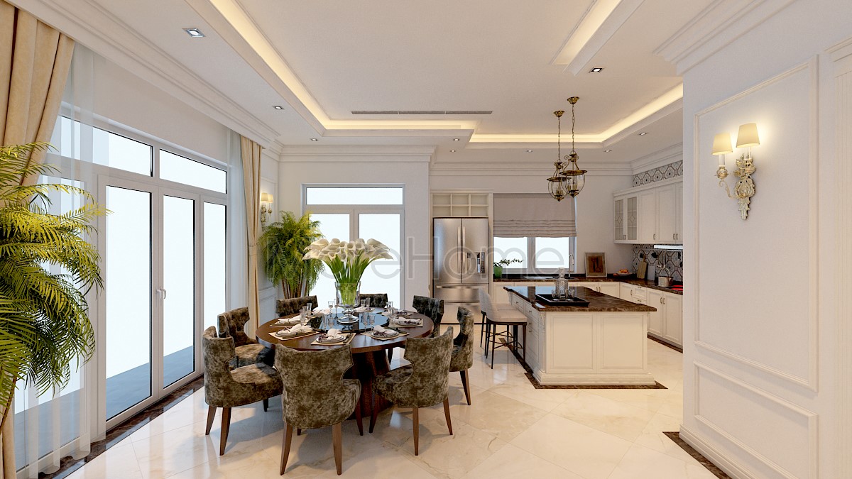 Căn biệt thự The Venica Khang Điền được các kiến trúc sư Morehome thiết kế. Mang phong cách nội thất tân cổ điển sang trọng quý phái. Mọi đường nét trong không gian đều thể hiện vẻ đẹp tân cổ điển nhẹ nhàng. Xuyên suốt từ không gian phòng khách tới phòng ngủ hay phòng bếp ý tưởng tân cổ điển được hiện thực hóa trong từng đường nét thiết kế. Hãy cùng chúng tôi khám phá mẫu thiết kế nội thất biệt thự tân cổ điển ấn tượng này.