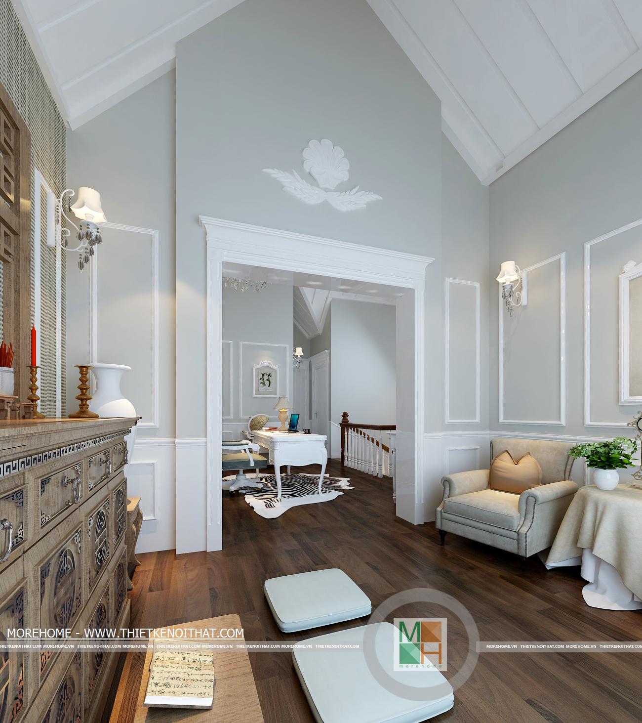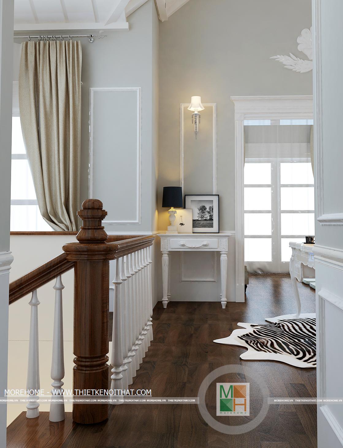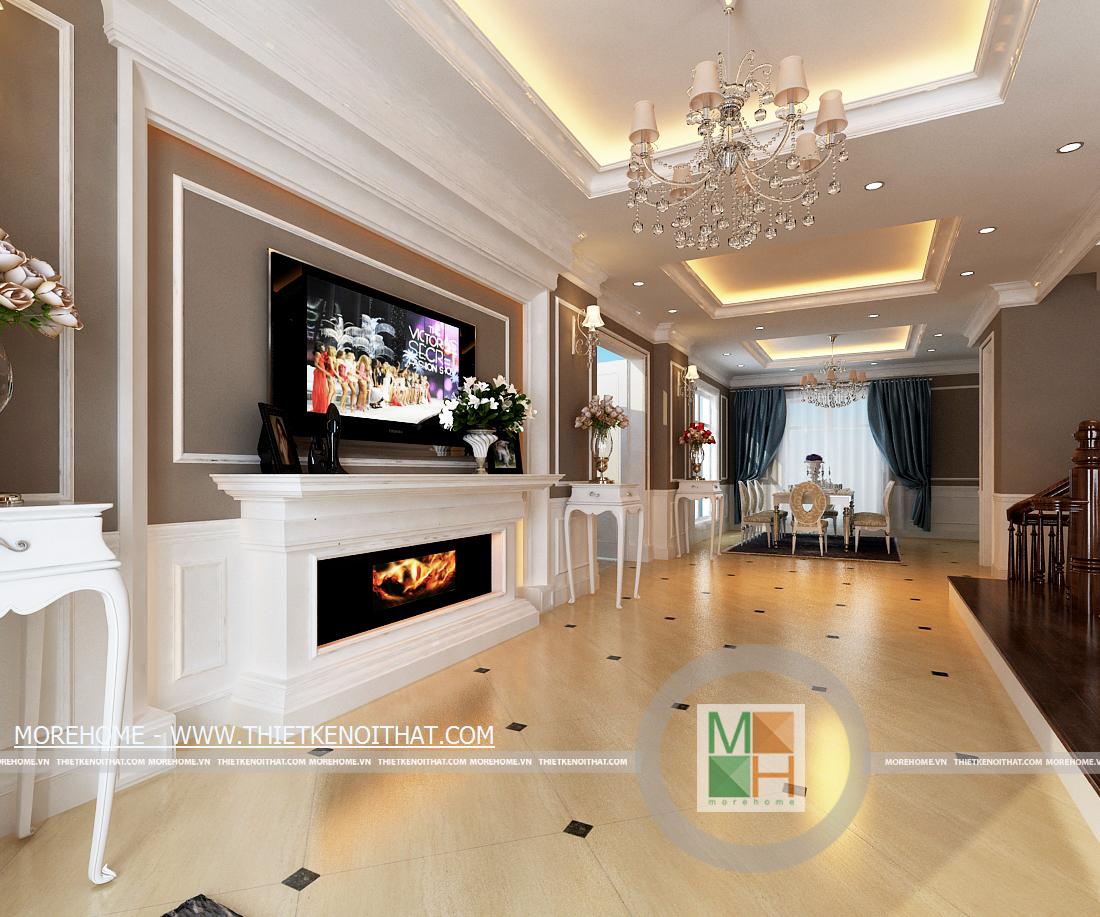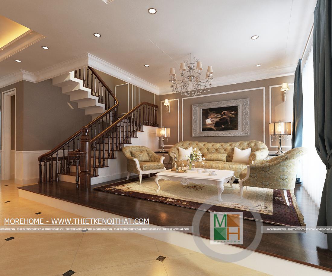 Thiết kế nội thất biệt thự tân cổ điển là một công việc đòi hỏi sự tinh tế và hàm chứa tính nghệ thuật cao để thể hiện được đẳng cấp sống của gia chủ. Tuy vậy nhưng các kiến trúc sư của Morehome vẫn đảm bảo được các yêu cầu đó và cho ra những sản phẩm hoàn hảo như căn biệt thự của dự án Vinhome Riverside - khu biệt thự Hoa Lan này.
