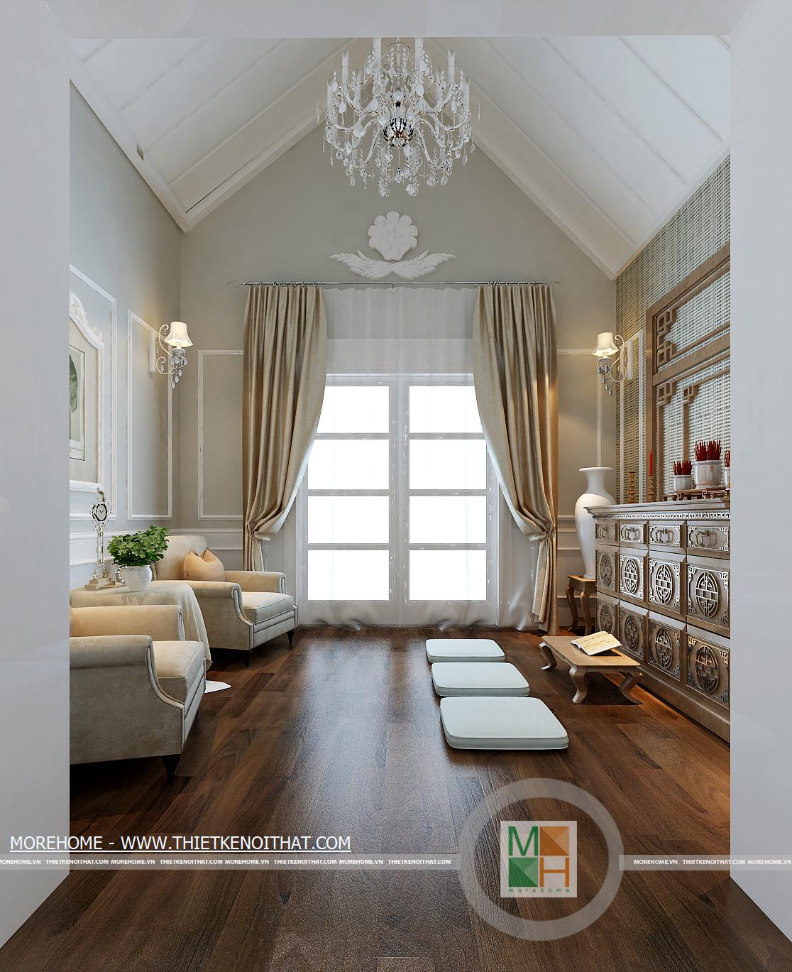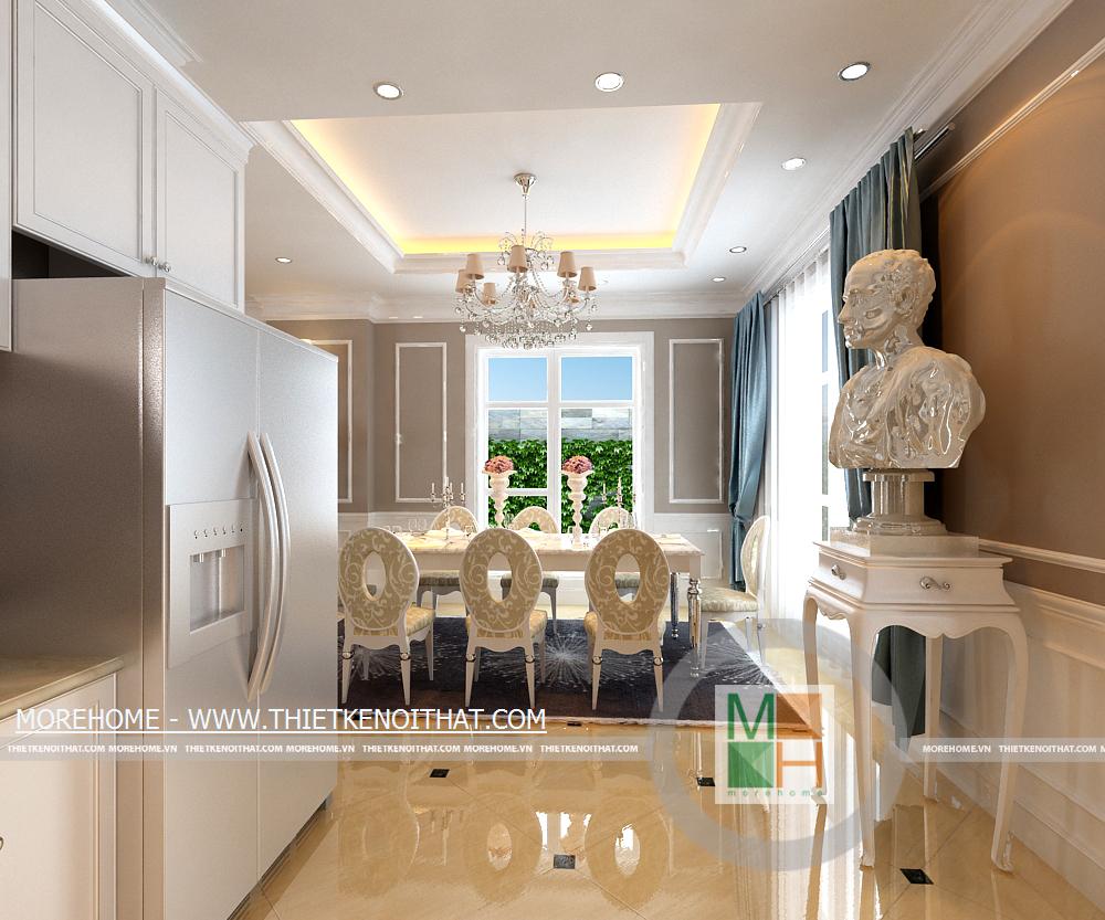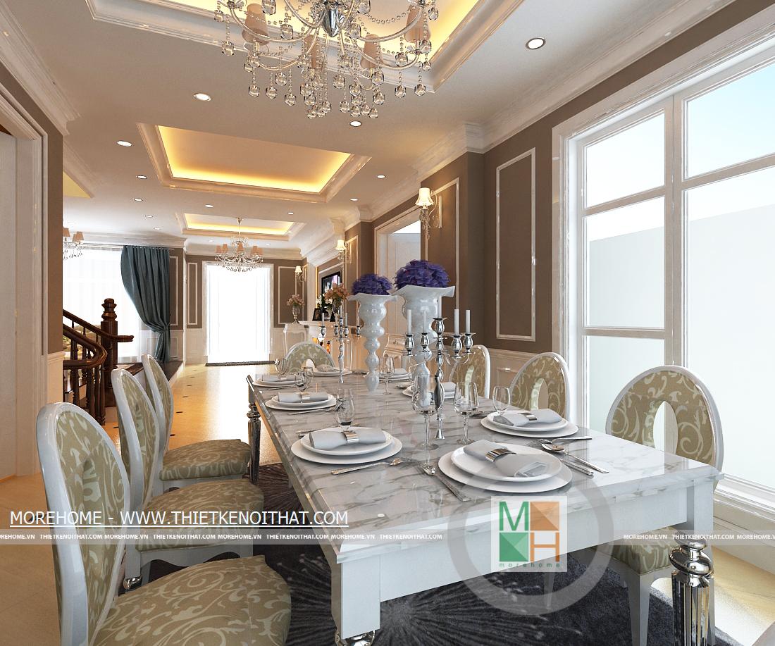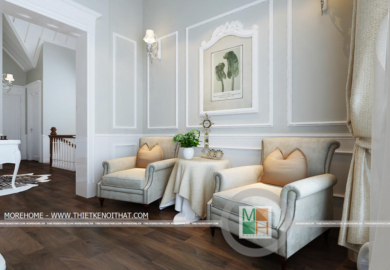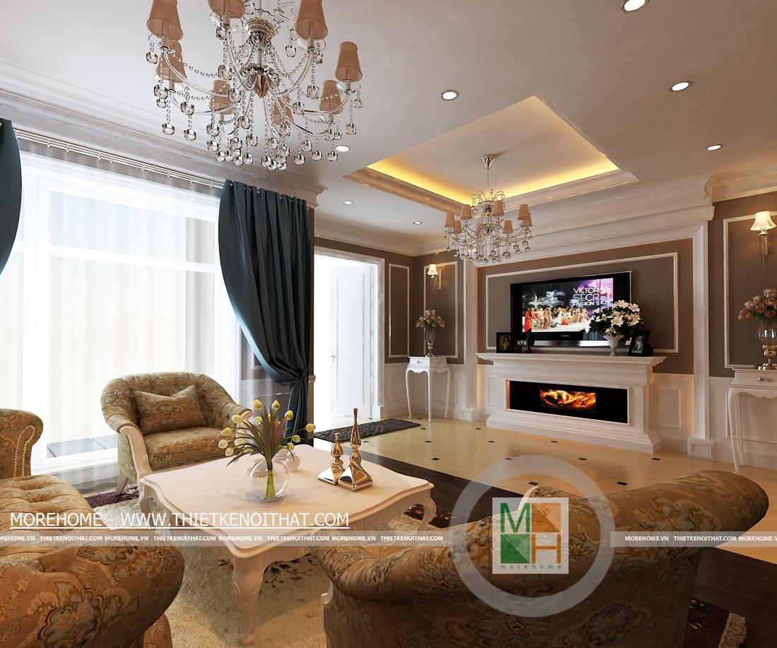 Thiết kế nội thất biệt thự tân cổ điển là một công việc đòi hỏi sự tinh tế và hàm chứa tính nghệ thuật cao để thể hiện được đẳng cấp sống của gia chủ. Tuy vậy nhưng các kiến trúc sư của Morehome vẫn đảm bảo được các yêu cầu đó và cho ra những sản phẩm hoàn hảo như căn biệt thự của dự án Vinhome Riverside - khu biệt thự Hoa Lan này.
