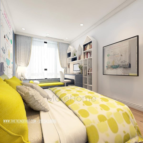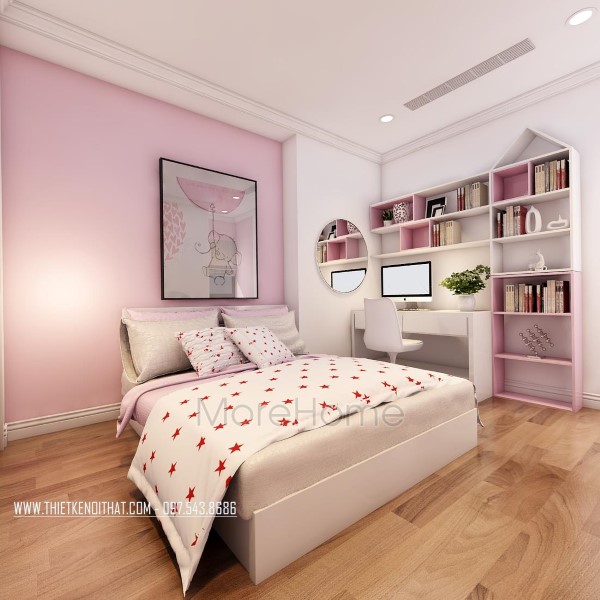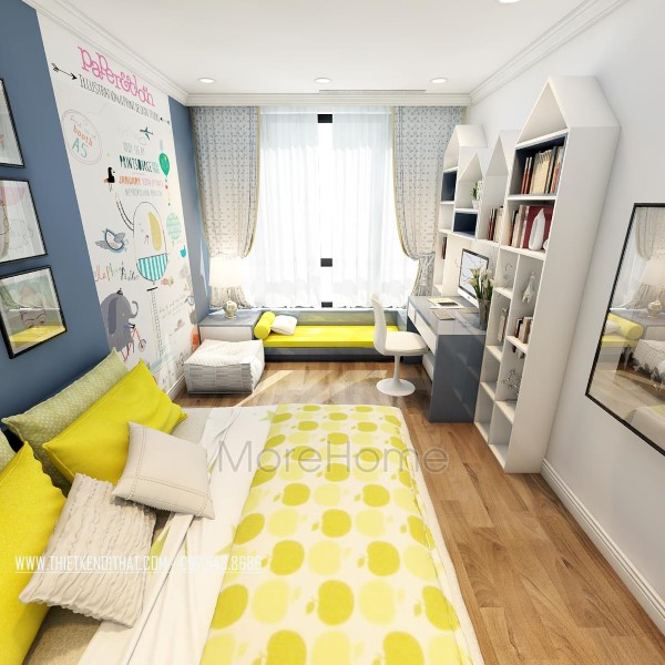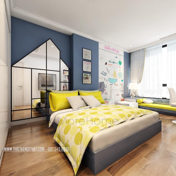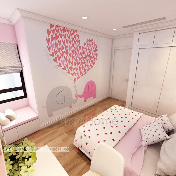 Thiết kế nội thất phòng ngủ trẻ nhỏ đặc biệt chú ý đến sở thích của trẻ, nổi bật nhất chính là việc dùng màu sắc trong không gian.