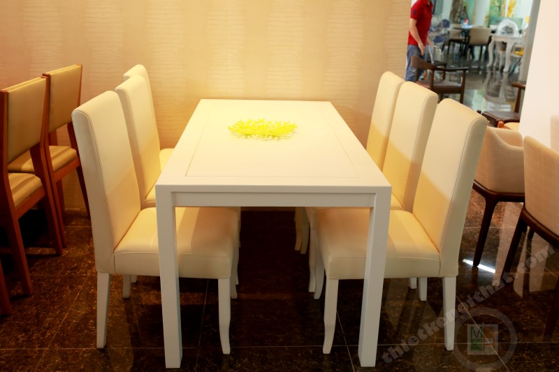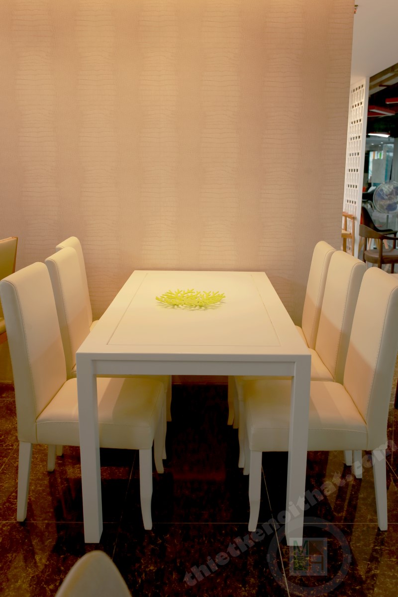 Bộ bàn ghế phòng ăn đẹp hiện đại màu trắng 02