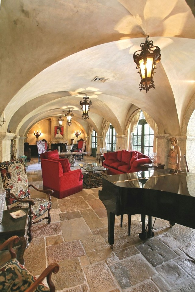 Nội thất nổi bật với mái vòm cong mềm mại và sàn đá sang trọng.